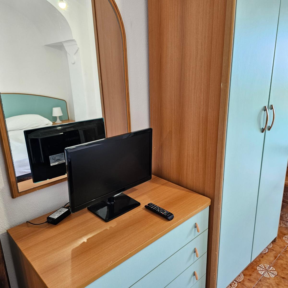 Mini-Apartment für 2 Personen, nur 50 Meter vom Strand von Citara und nur 200 Meter von den berühmten Poseidon-Thermalgärten entfernt. Ausgestattet mit einer ausgestatteten Küchenzeile, eigenem Bad mit Dusche, kleiner Terrasse mit Meerblick, TV, WLAN, Deckenlüftung.