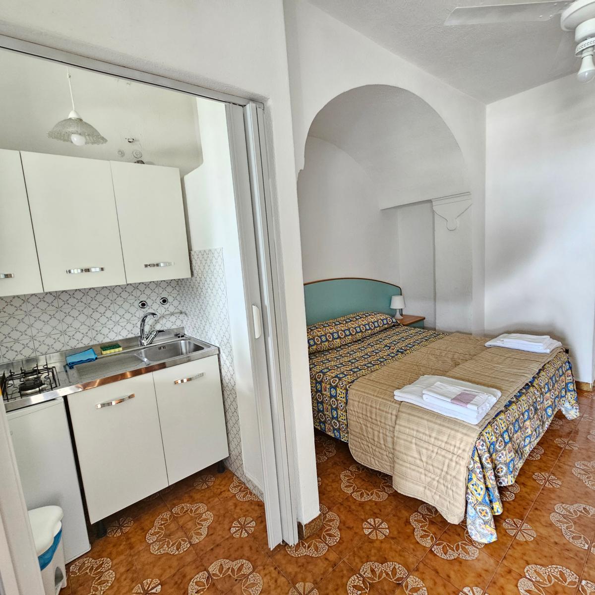 Mini-Apartment für zwei oder drei Personen in unserer Residenz Paco Mare, nur 50 Meter vom Strand von Citara entfernt, ausgestattet mit einer ausgestatteten Küchenzeile, eigenem Bad mit Dusche, kleiner Terrasse, WLAN, Parkplatz, TV, Deckenlüftung, Klimaanlage auf Anfrage täglicher Zuschlag von 10,00 €. Nur 200 Meter von den berühmten Poseidon-Thermalgärten entfernt.